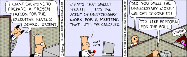> I've noticed that waiting until the last minute to do something you need to do OFTEN results in never having to do it at all. You end up doing only things that really needed to get done.